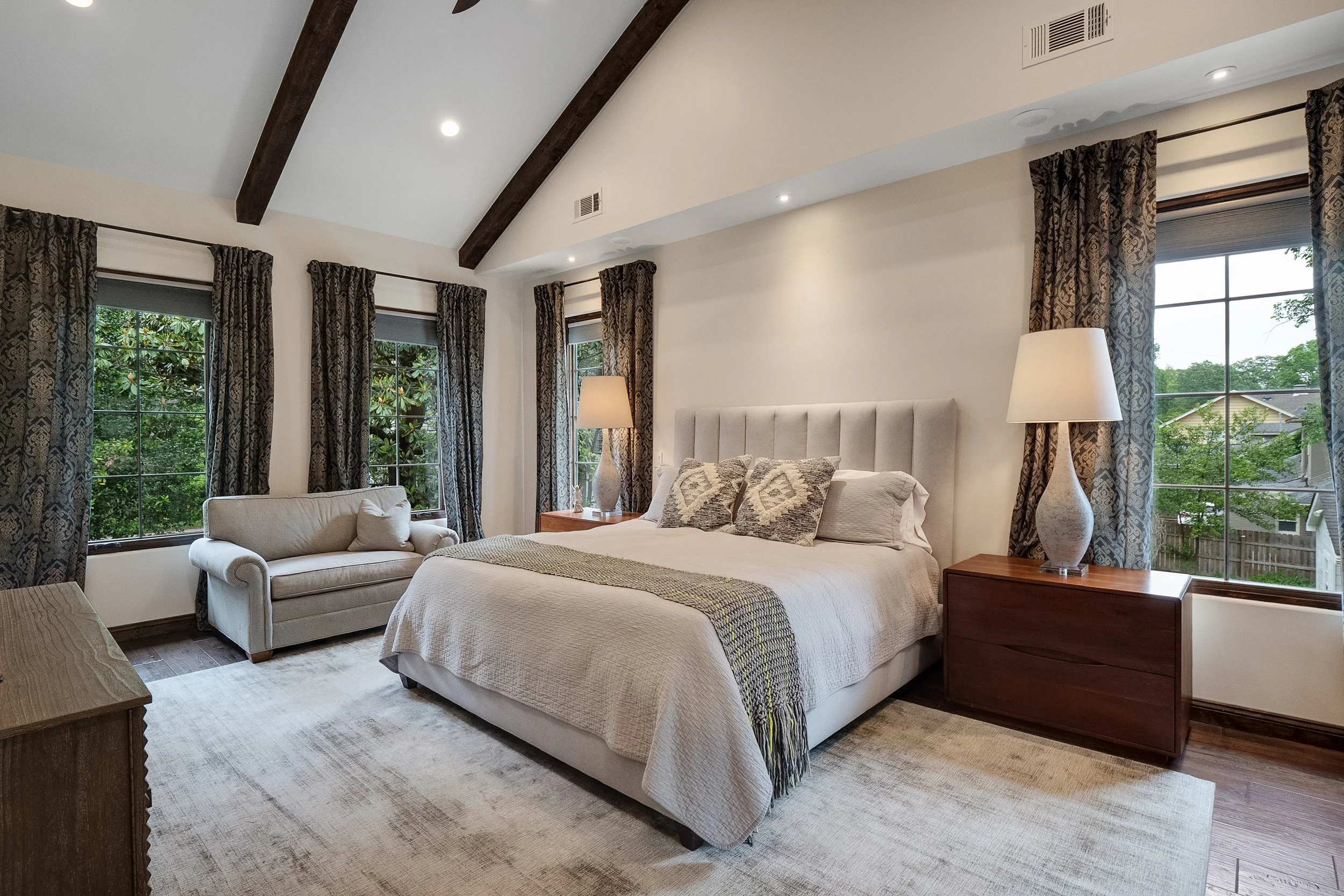 En-suite bath features heated floors, a steam shower, and dressing room.